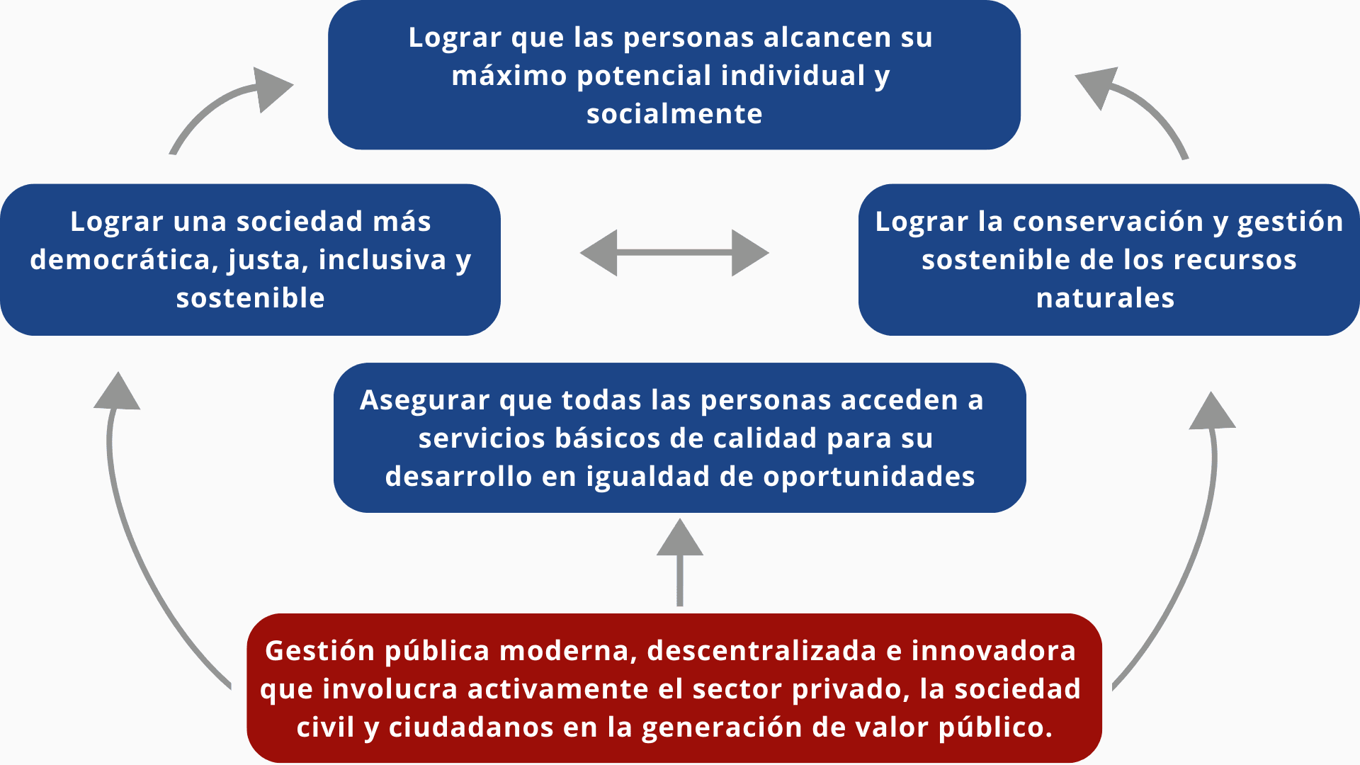 Creemos que todas las personas que forman parte de una comunidad, deben conocer la estrategia y sus avances de una manera simple y accesible. Aquí podrás conocer la estrategia país, los indicadores para evaluar nuestro desempeño en cada objetivo, los principales desafíos que enfrentamos como nación y el avance de los proyectos para lograr estos objetivos.